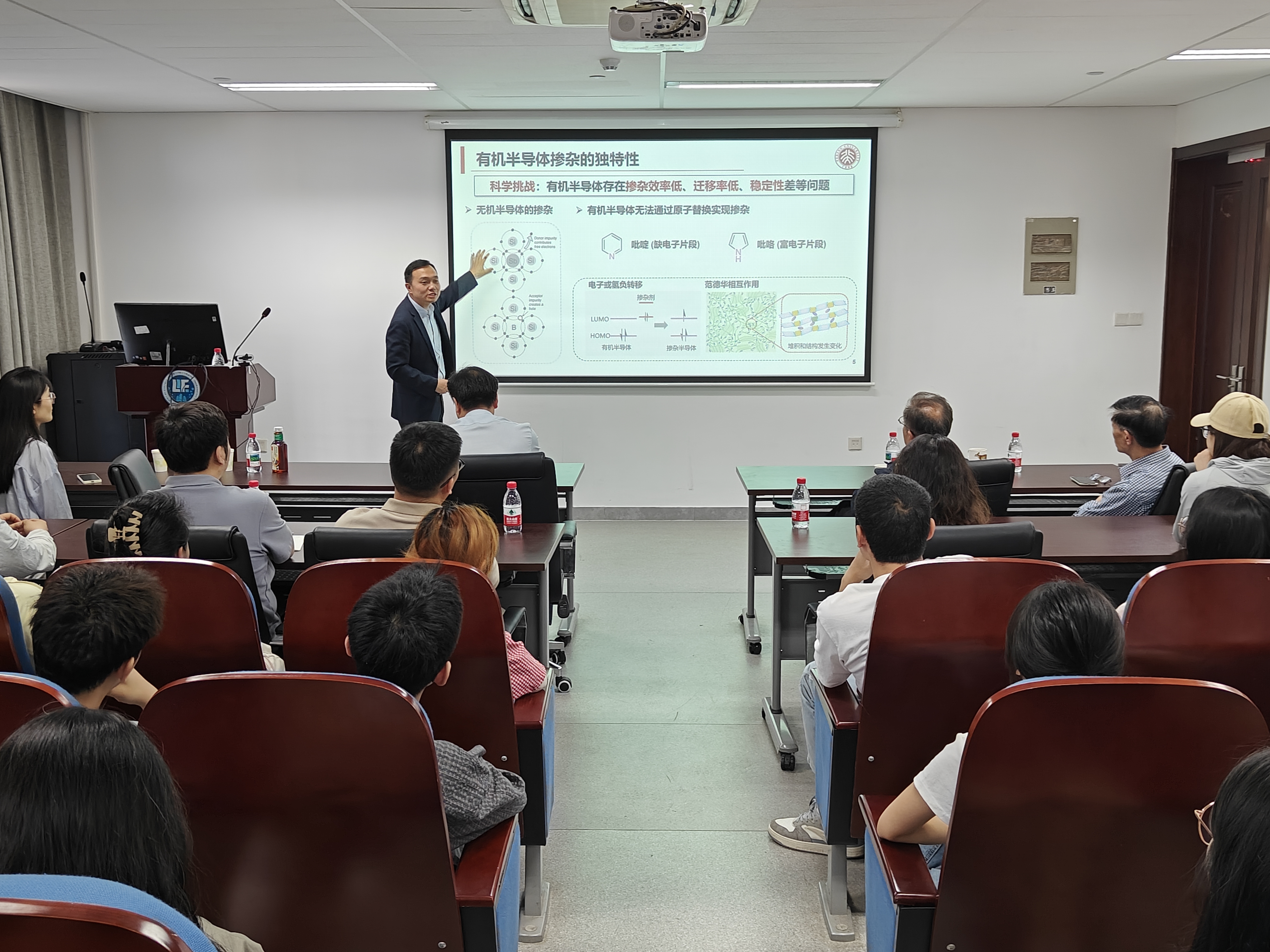 专题讲座中,雷霆教授系统阐述了高分子生物电子材料的研究背景与发展现状,重点介绍了其团队在有机电化学晶体管材料、加工技术及柔性器件集成等领域取得的最新研究成果。雷教授特别分享了基于电化学掺杂原理开发的半导体水凝胶材料及其在生物电子领域的前沿应用,并对该领域的未来研发需求进行了前瞻性分析。